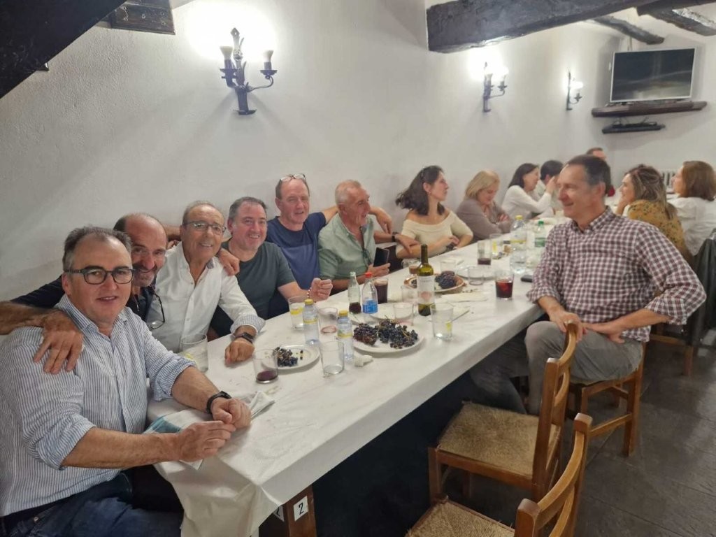 cuadrilla de buenos aficionados a la mesa actividad semanal: cena viernes con menu fijo que consiste en unos entrantes como panceta a la brasa y txistorra, despues viene la cena en si que consiste en ensalada verde, ensalada de tomate con ajo (mitad y mitad), bakalao al pilpil con patatas asadas, pimiento verde asado y huevo frito, quesos variados y algo dulce para rematar. El vino acompaña hasta el postre luego viene la baraja y tantos junto con unos digestivos (gintonic, roncola, kalimotxos o lo que se pida). Esta actividad remonta mas de 25 años.